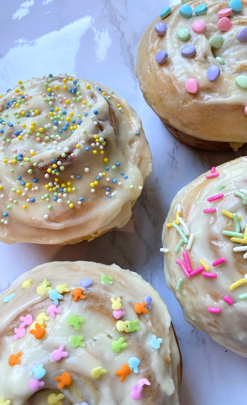 Whether for a special occasion or just to elevate your family’s breakfast, the cinnamon roll is a crowd pleaser! These rolls are handmade with organic flour, milk, eggs and Saigon cinnamon. And then they are slathered with a rich cream cheese vanilla frosting. We offer these large rolls, a smaller size for the kiddos (or calorie counters) and a beautiful cinnamon roll cake that is a great alternative to the traditional cookie cake or birthday cake.