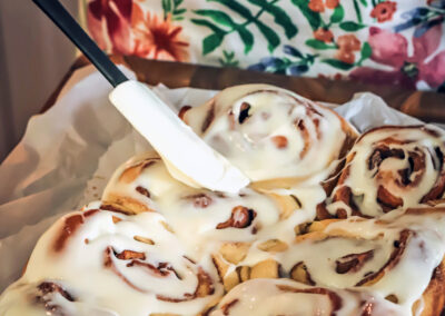 Whether for a special occasion or just to elevate your family’s breakfast, the cinnamon roll is a crowd pleaser! These rolls are handmade with organic flour, milk, eggs and Saigon cinnamon. And then they are slathered with a rich cream cheese vanilla frosting. We offer these large rolls, a smaller size for the kiddos (or calorie counters) and a beautiful cinnamon roll cake that is a great alternative to the traditional cookie cake or birthday cake.