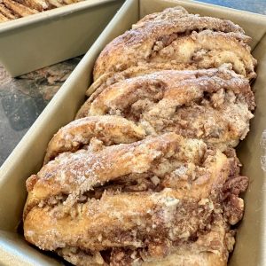 Buttery, flaky croissant bread is pure heaven! But who has the time, the skill and most of all the patience to bake up this homemade pastry? Look no further! We’ve got you covered! This loaf has the same taste and texture as the croissants you get at your favorite bakery. But this bread is perfect for slicing and sharing. And think of the possibilities! You can use it as a replacement for the bread you use for grilled cheese or any other favorite sandwich.