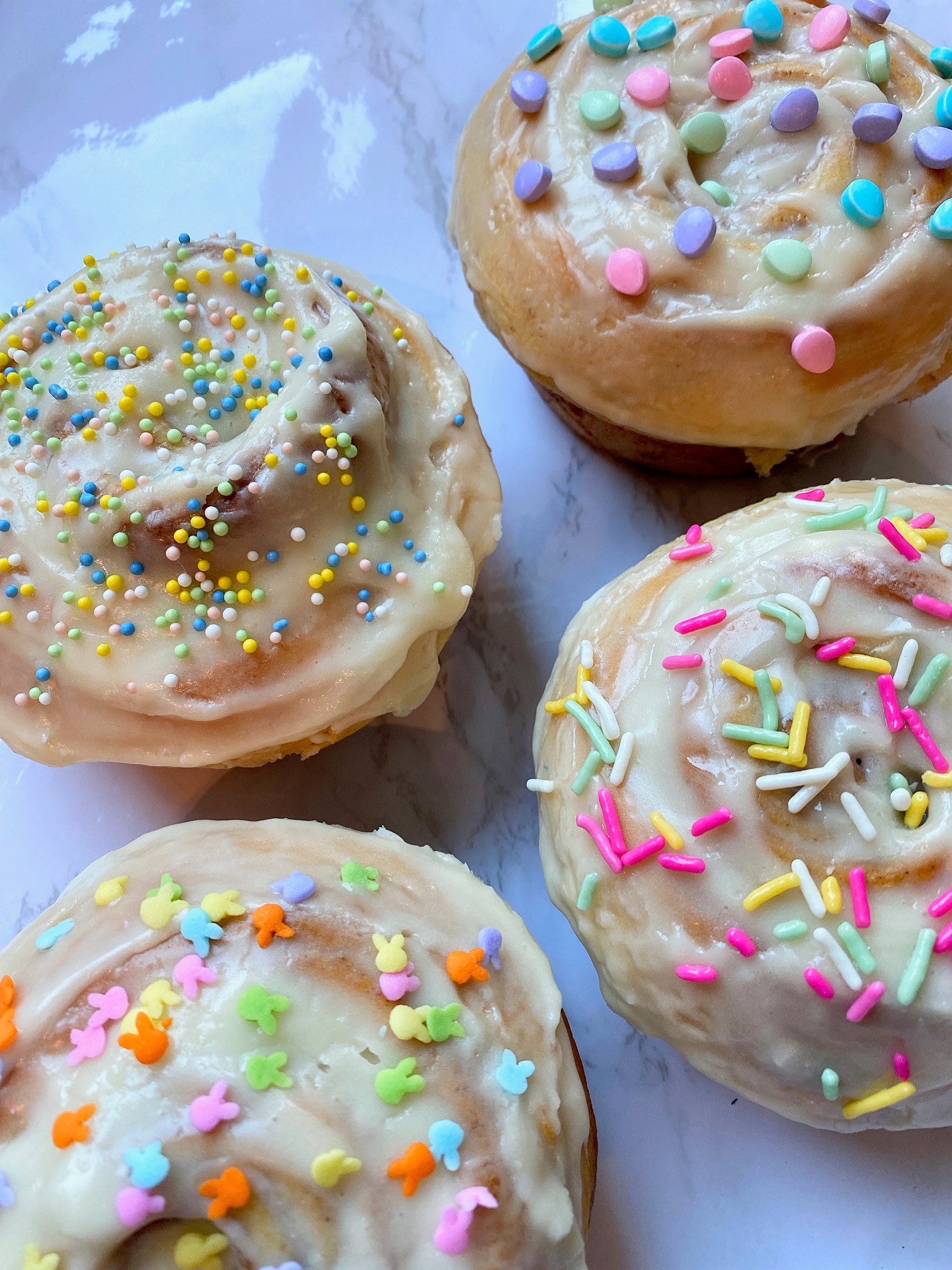 These are going to be a hit at your Easter brunch or any Springtime celebration. Offered for a limited time, these 4-inch jumbo rolls are decorated with bunnies, eggies, sprinkles or jimmies….or a variety of all! Just make a note of your preference when ordering. Sold individually. Available through April 16th.