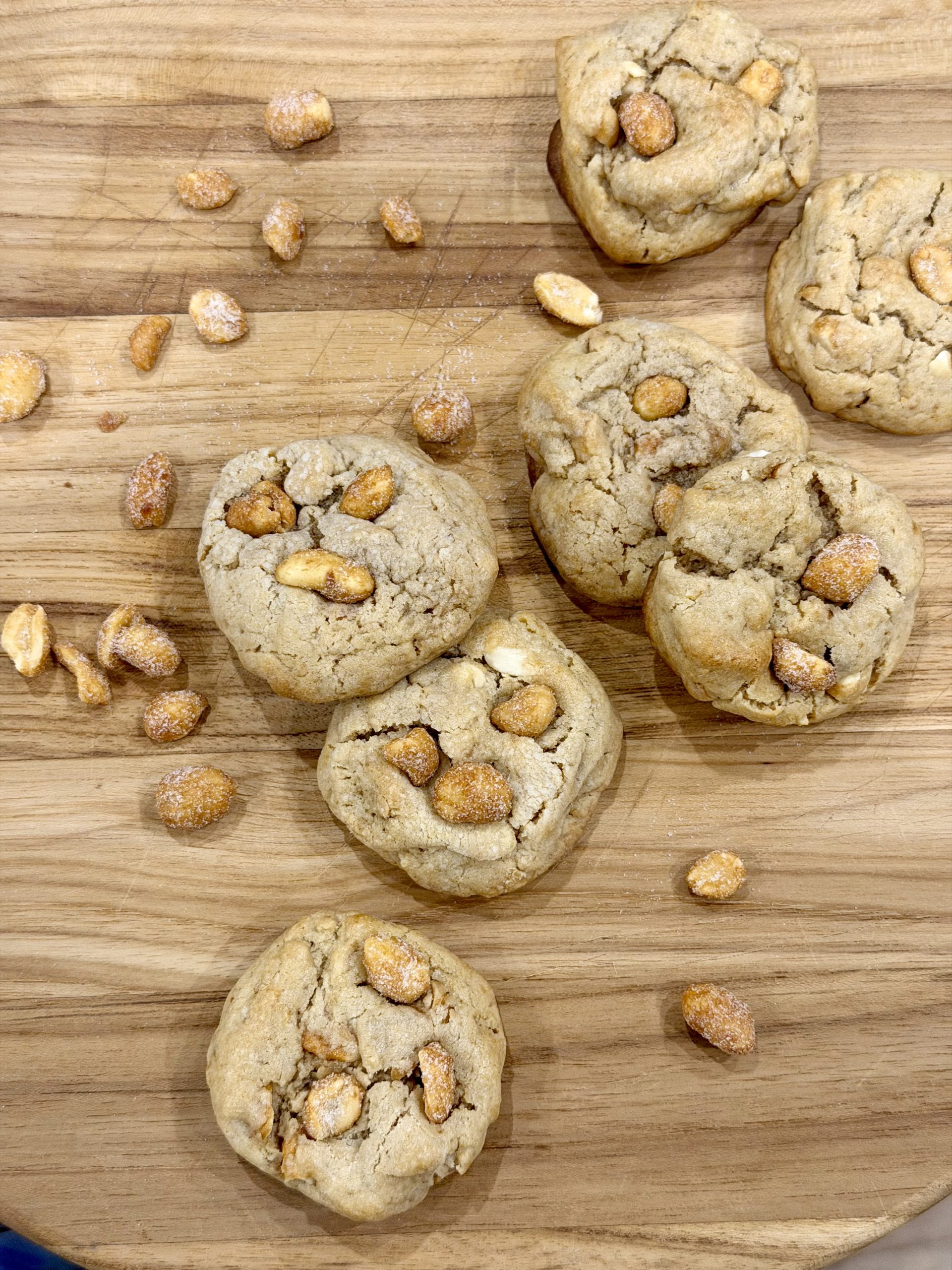 An elevated peanut butter cookie! Chewy centers, crisp edges, and deep peanut flavor from creamy peanut butter and crunchy honey-roasted peanuts. One dozen to an order.
